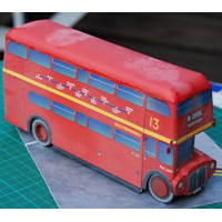 This is a model of the "L" (long, i.e. 30 feet) model of the famous double-decker buses London was famous for. It was built from 1954 to 1968 and served London from 1956 to 2005, with the RML model going into production in 1965. Some buses were refurbished from 1992 to 1994 with modern engines. The standard model could carry 64 passengers. All in all, 2876 Routemaster buses were built, and 1000 remain operational today for various purposes you can even see and use them in London on the two heritage routes they still serve.